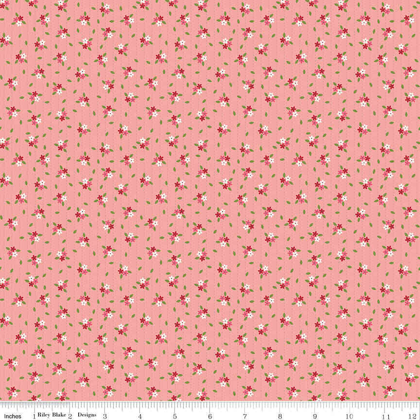 Enchanted Meadow Coral Scattered Flowers Yardage - Beverly McCullough for Riley Blake Designs