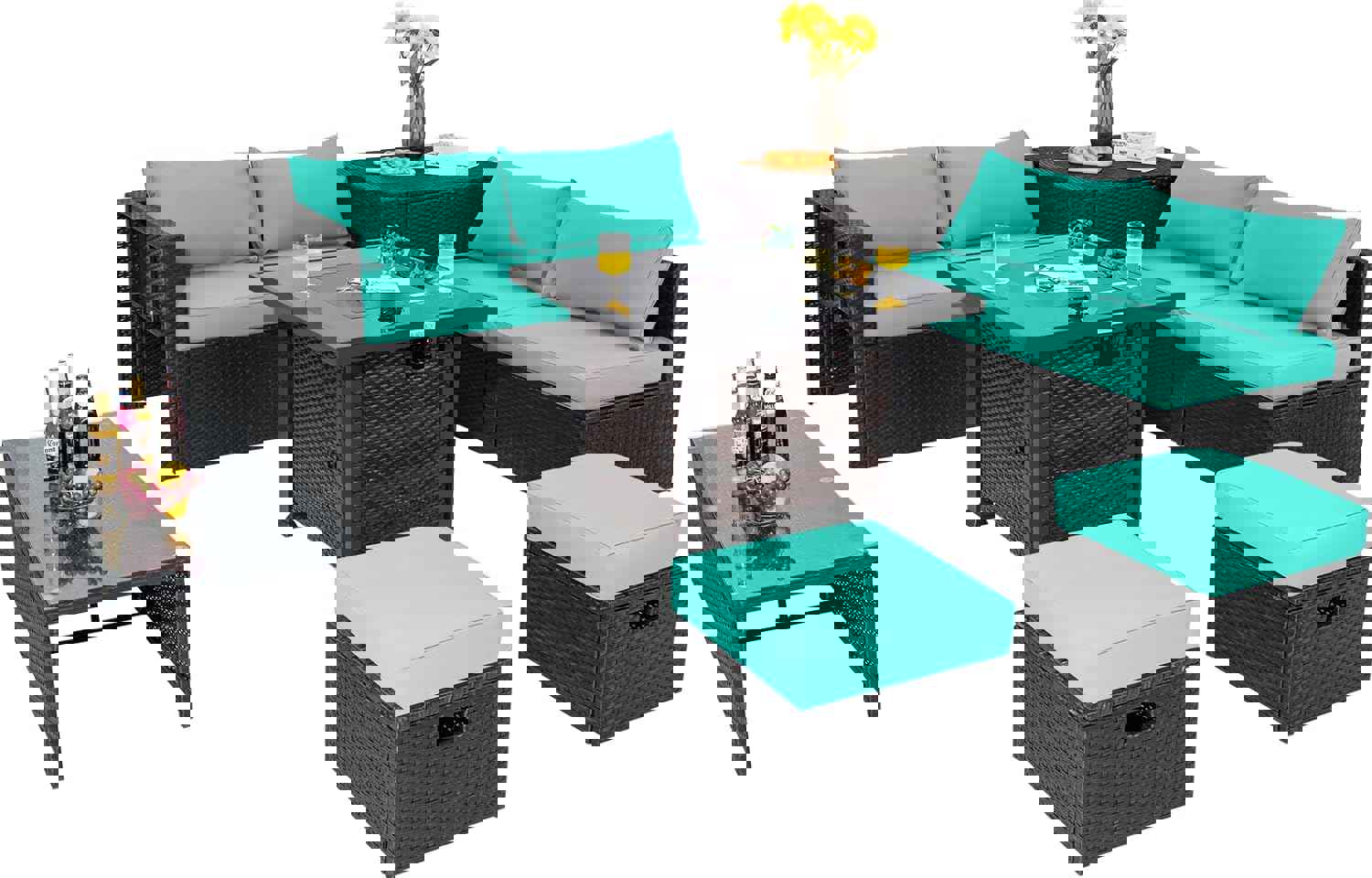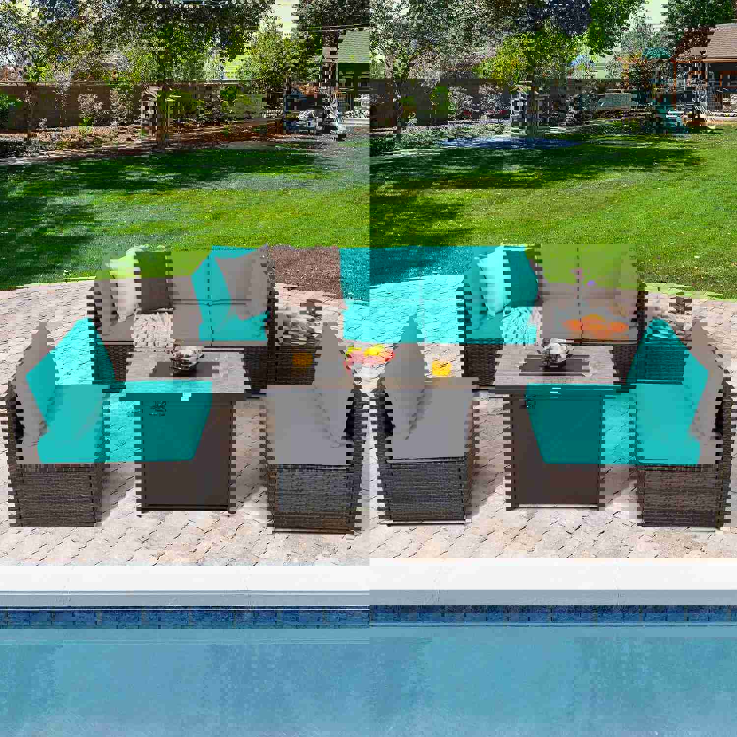 Tangkula 9-Piece Outdoor Patio Furniture Set with 35-Inch Propane Fire Pit Table