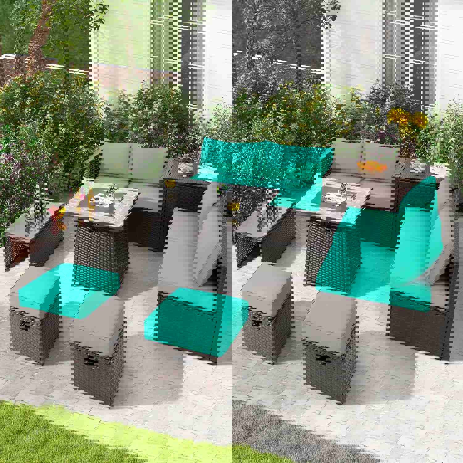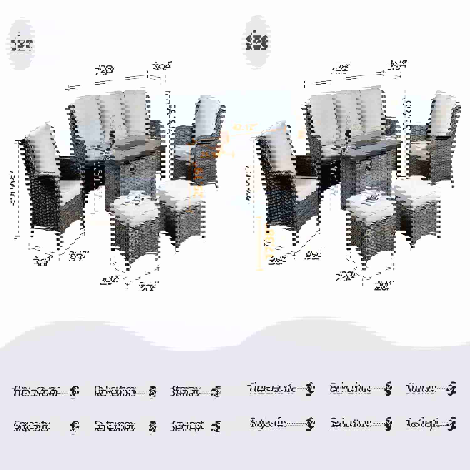 Ovios Patio 6-Piece Conversation Set with 42 Rectangle Propane Fire Pit Table Kenard