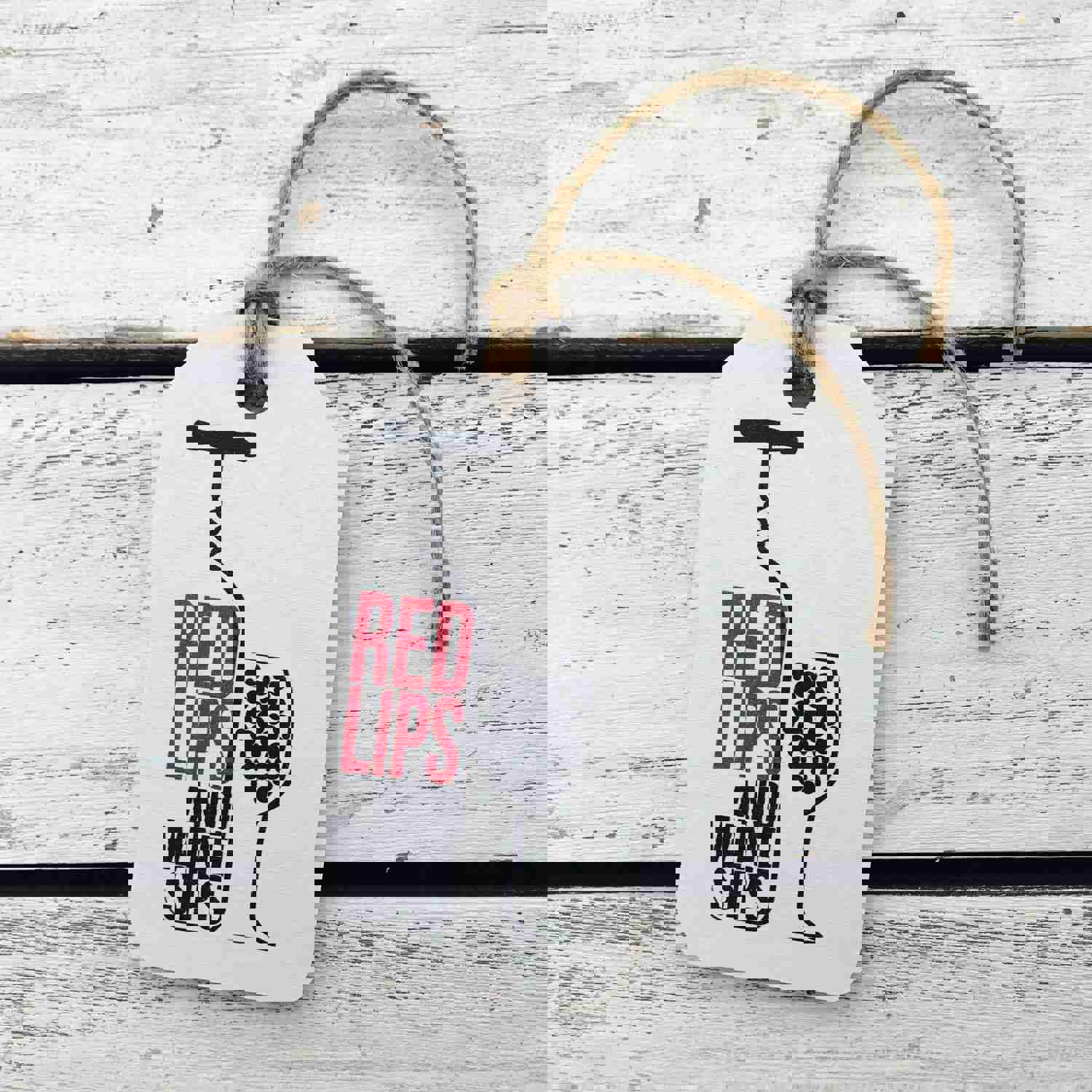 Red Lips and Wine Sips Gift Tag - Birch Wood Hanging Tag