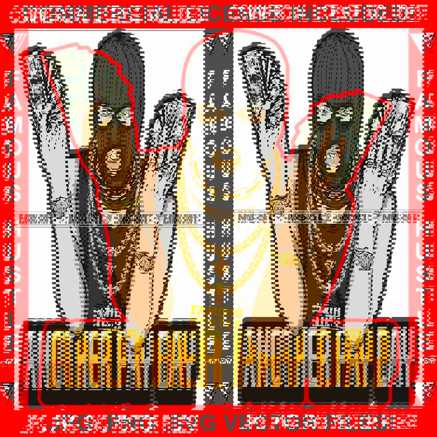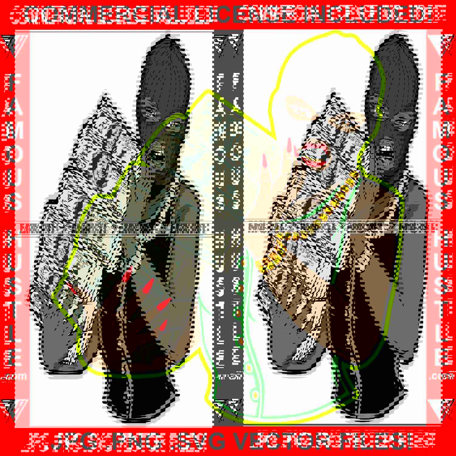 Paid In Full Famous Hustle Gangster Hustle Black Man Ski Mask Gold Teeth Jewelry Face Mask Cash Money Bundles Hip Hop Rap Rapper Plug Trap Street Hood Ghetto Hustling Drip Art Graphic Design Logo T-Shirt Print Printing JPG PNG SVG Vector Cut File