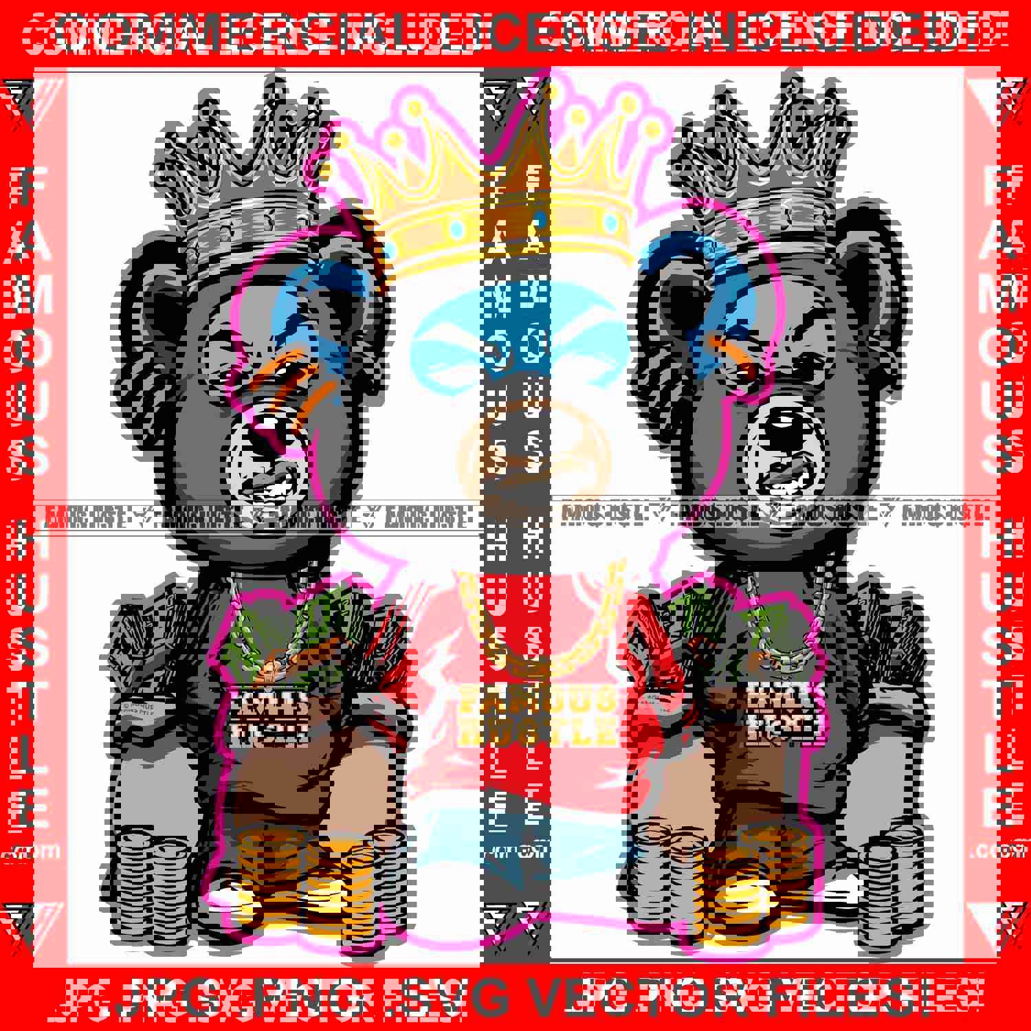 Boss Status Rebel Gangster Teddy Bear King Middle Finger Gold Jewelry Cash Money Stack Tattoo Hip Hop Rap Hustler Drip Plug Trap Hood Thug Gang Street Mafia Mob Famous Hustle Art Graphic Design Logo T-Shirt Print Printing JPG PNG SVG Vector Cut File
