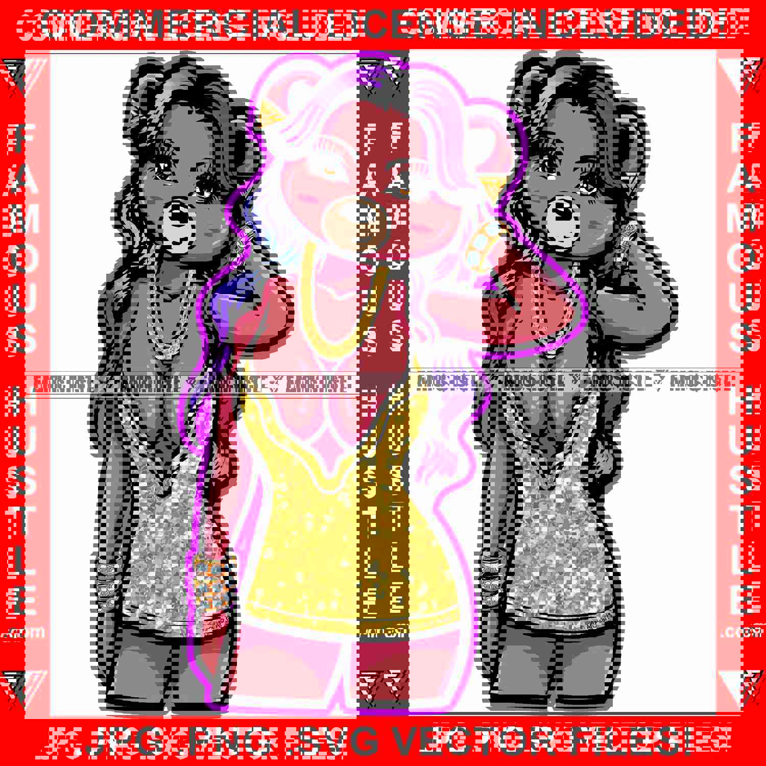 Hip Hop Gangster Teddy Bear Dollar Sign Necklace Graphic Design SVG PNG JPG Files