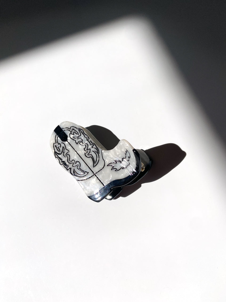 Hand-painted Western Cowboy Boot Claw Hair Clip | Eco-friendly White