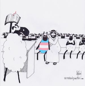 Jesus Covers the Trans Sheeps Ears Digital Cartoon
