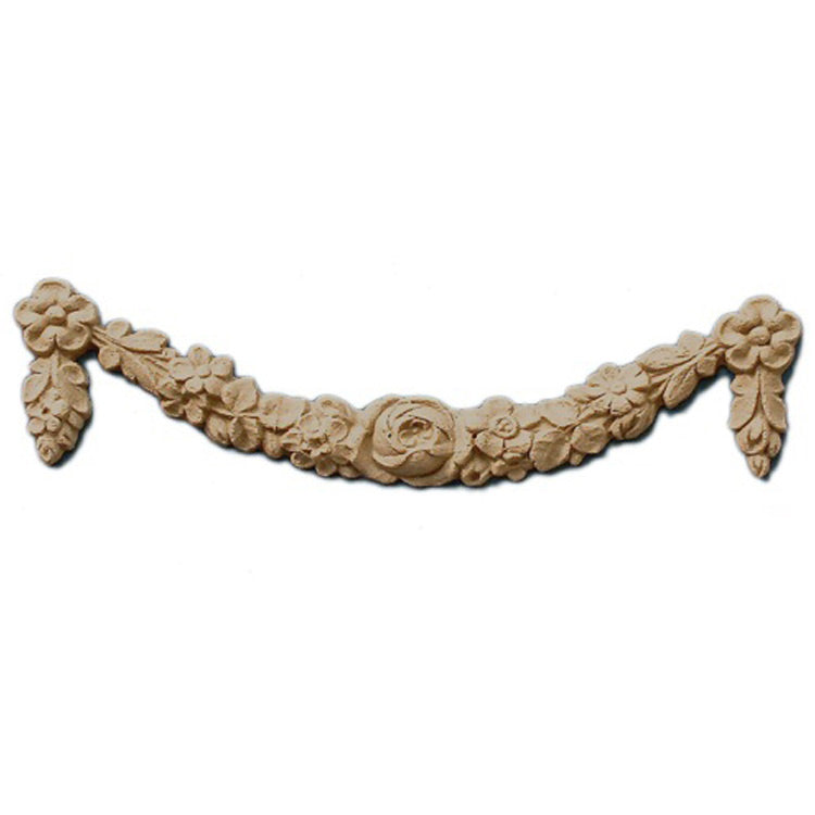 3-3/4(W) x 1-1/2(H) Rose Swag Interior Accent for Woodwork - Compo Material