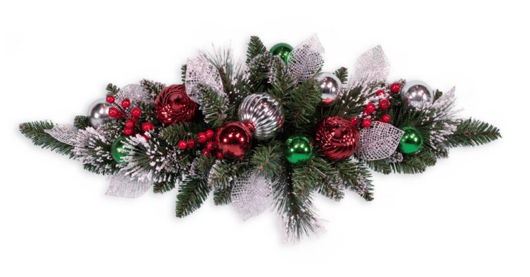32 Inch Flocked Swag Decor with Mixed Pine and Festive Ornaments