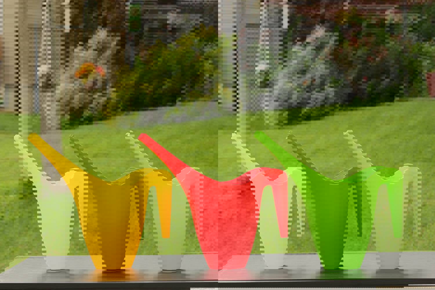 Ashman Set of 6 Watering Cans, 2 Liter Capacity, Indoor & Outdoor Use (Red, Green, Yellow)