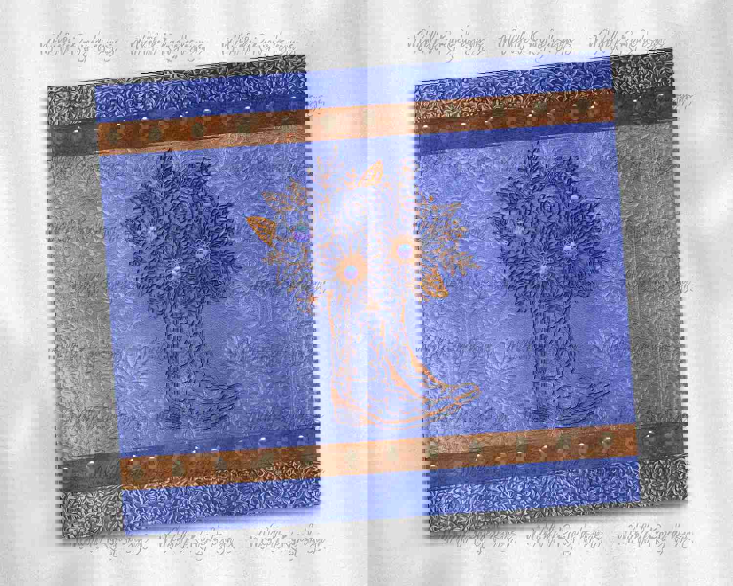 Tooled Leather Cowgirl Fall Blue Burgundy Boot with Bow - Digital Design Files