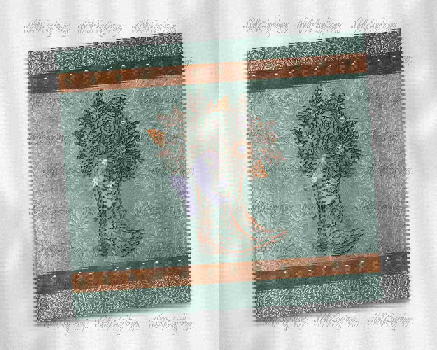 Tooled Leather Cowgirl Sage and Violet Boot with Bow - Digital Design Files
