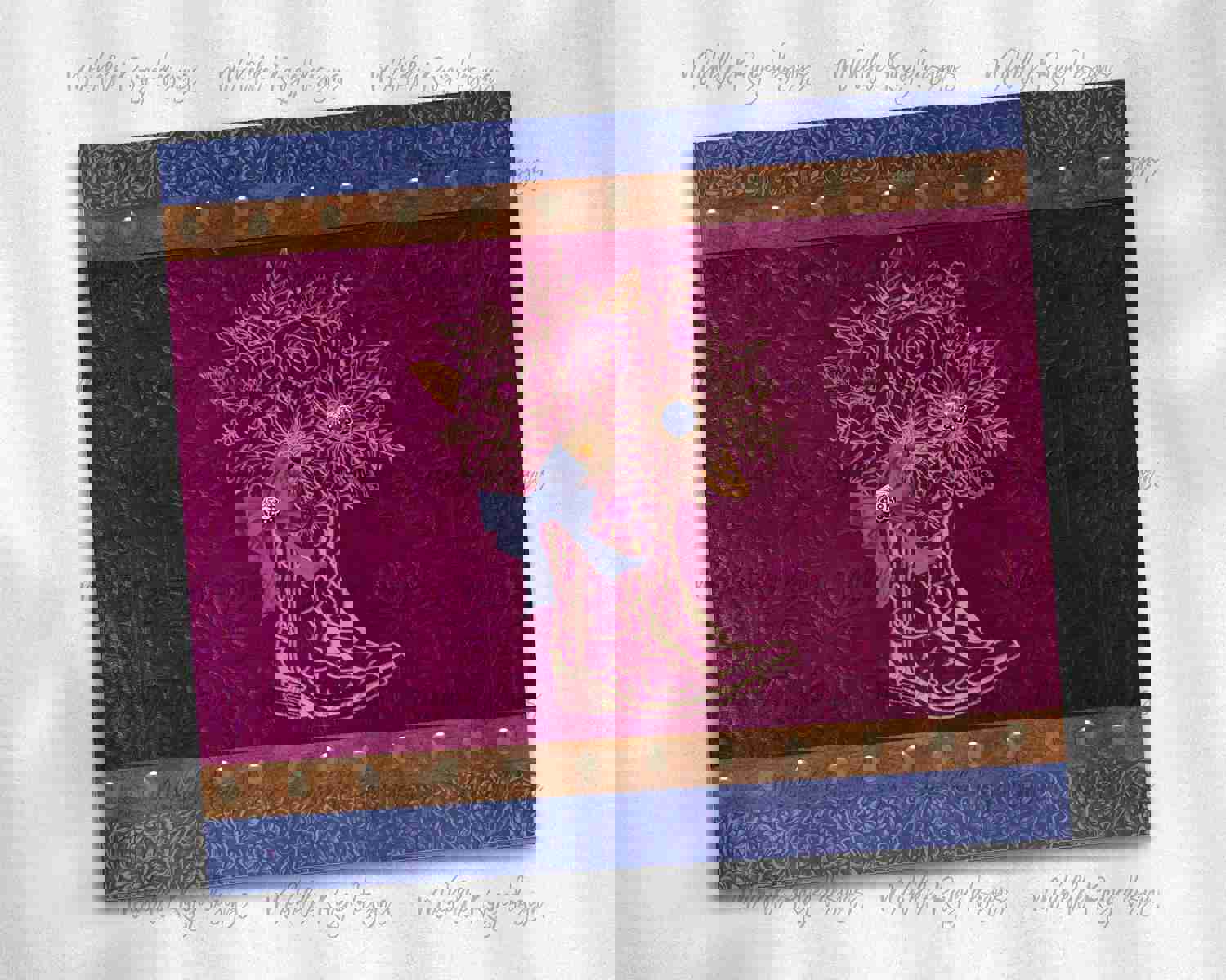 Tooled Leather Cowgirl Grey Black Violet Boot with Bow - Digital Design Files