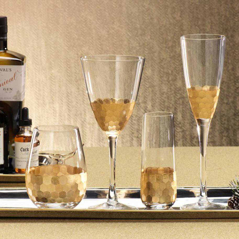 Fez Cut Red Wine Glass with Gold Leaf Patterns