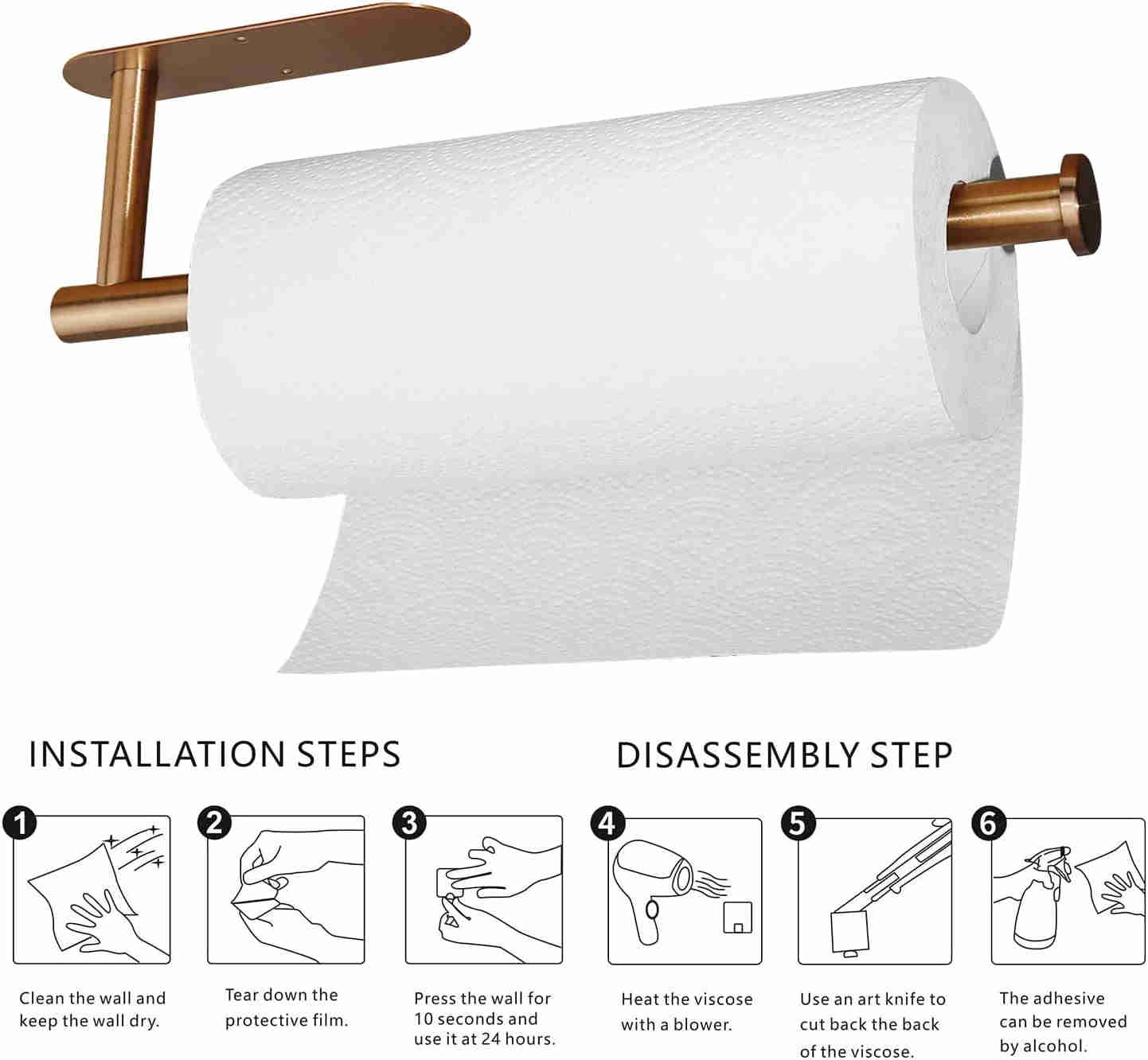 Stainless Steel Paper Towel Holder for Kitchen - Self-Adhesive Under Cabinet, Rose Gold