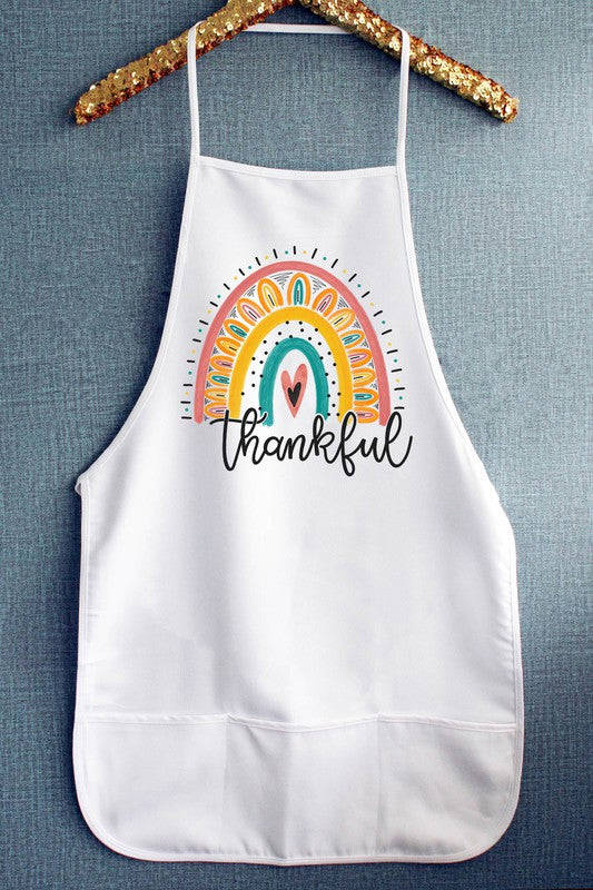 Thankful Rainbow Kitchen Apron - 100% Polyester with Pockets