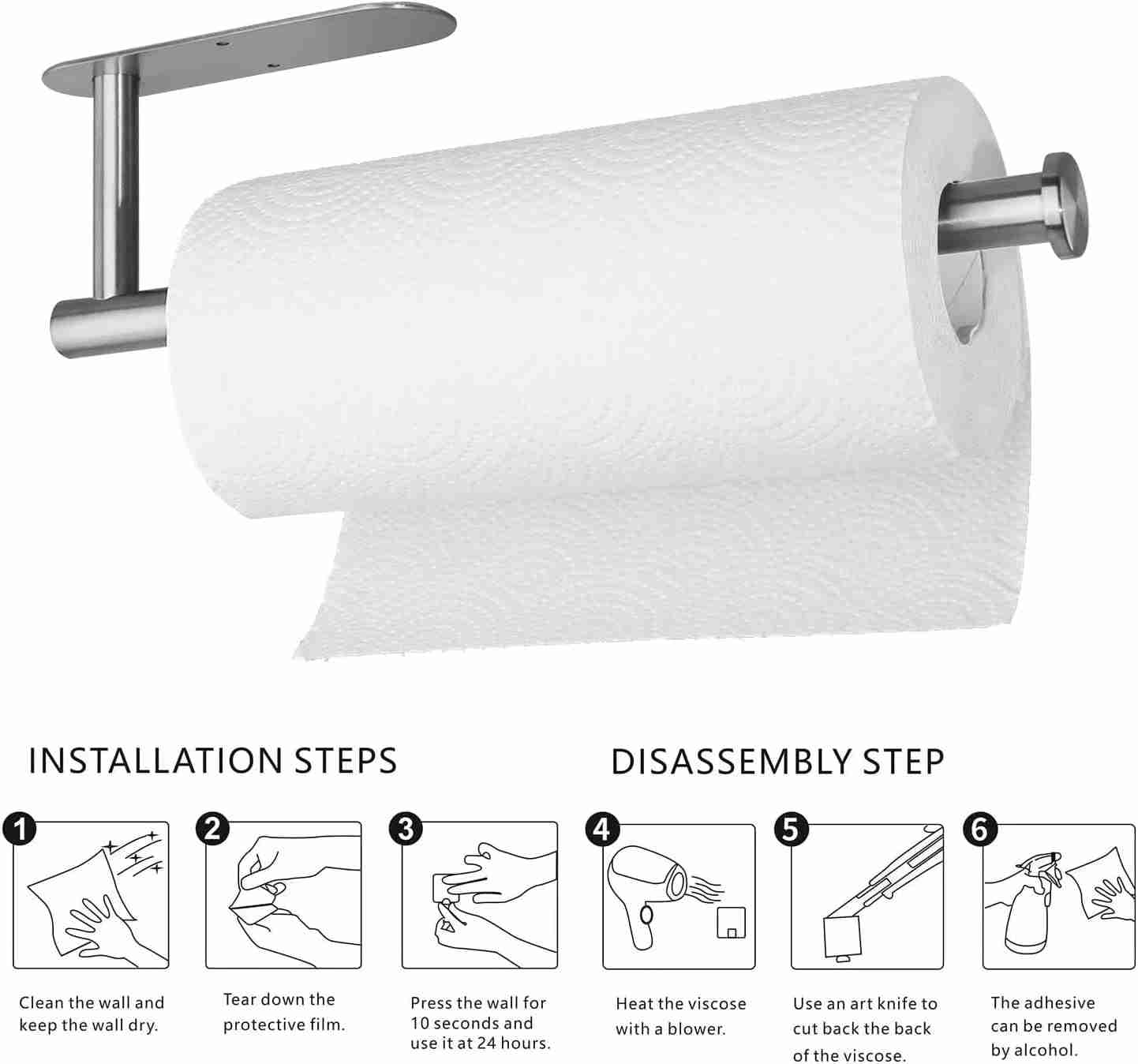 Stainless Steel Paper Towel Holder for Kitchen - Self-Adhesive Under Cabinet Mount