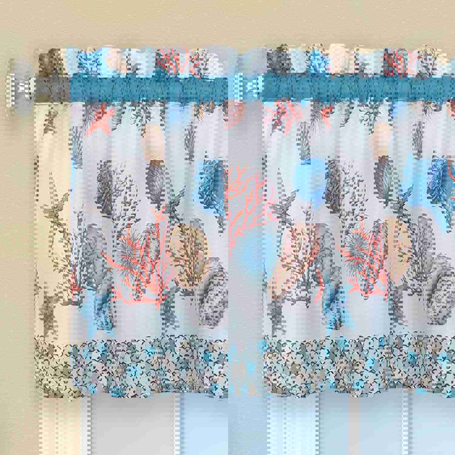 Coastal 3-Piece Printed Kitchen Curtain Set with Starfish and Coral Design