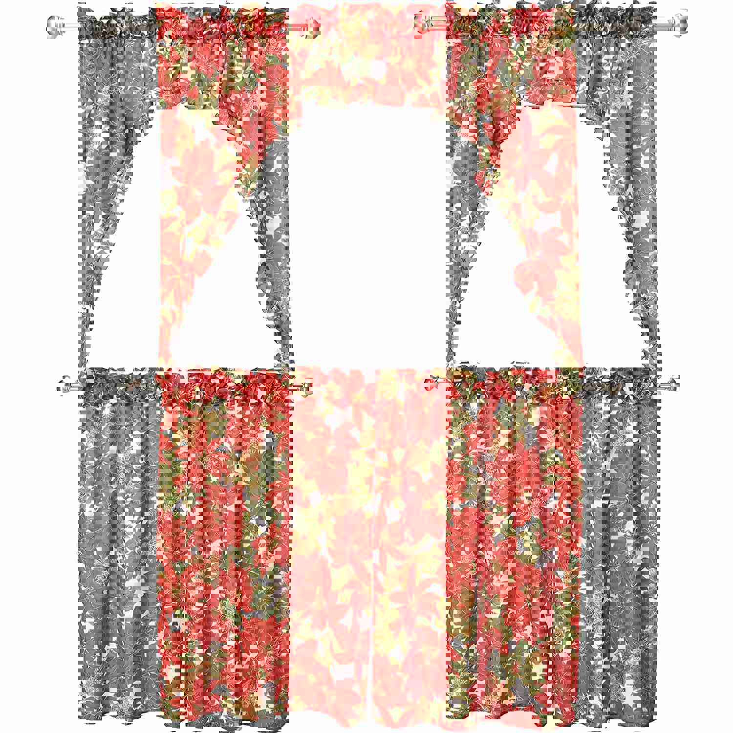 European Seasonal Poinsettia Kitchen Curtain Set - Swag 60x36, Tiers 30x36 Inches