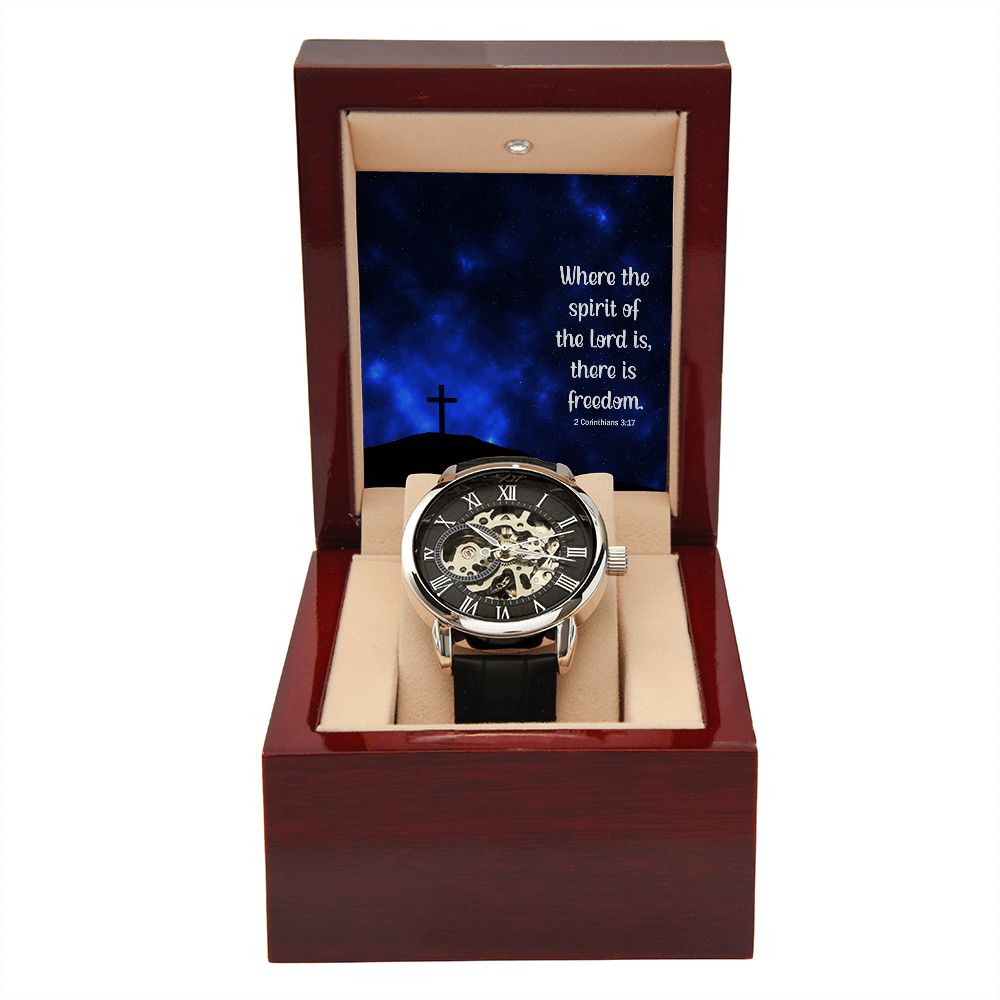 Men's Luxury Openwork Watch with Genuine Leather Strap