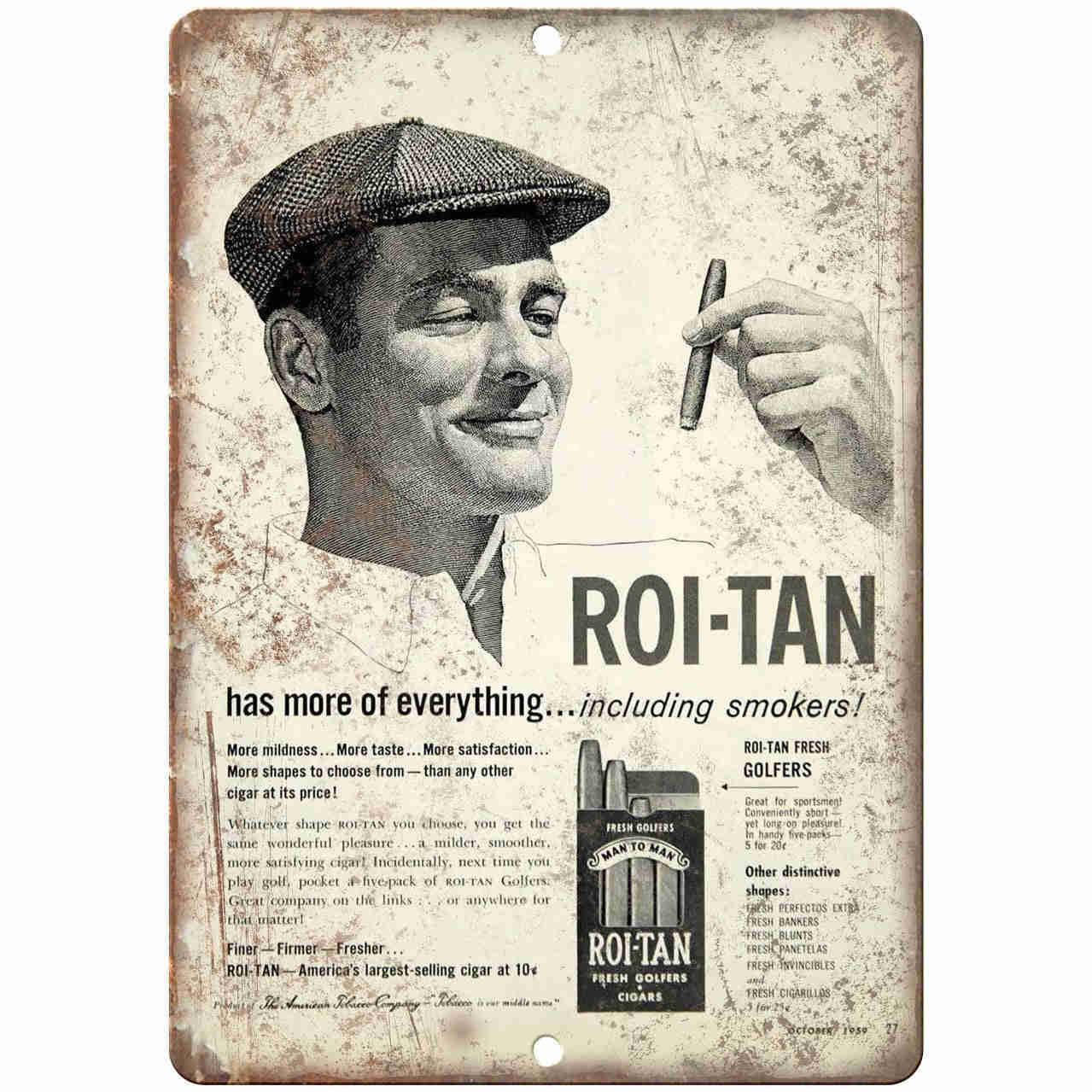 Roi-Tan Golfers Vintage Cigar Ad 10 x 7 Reproduction Metal Sign