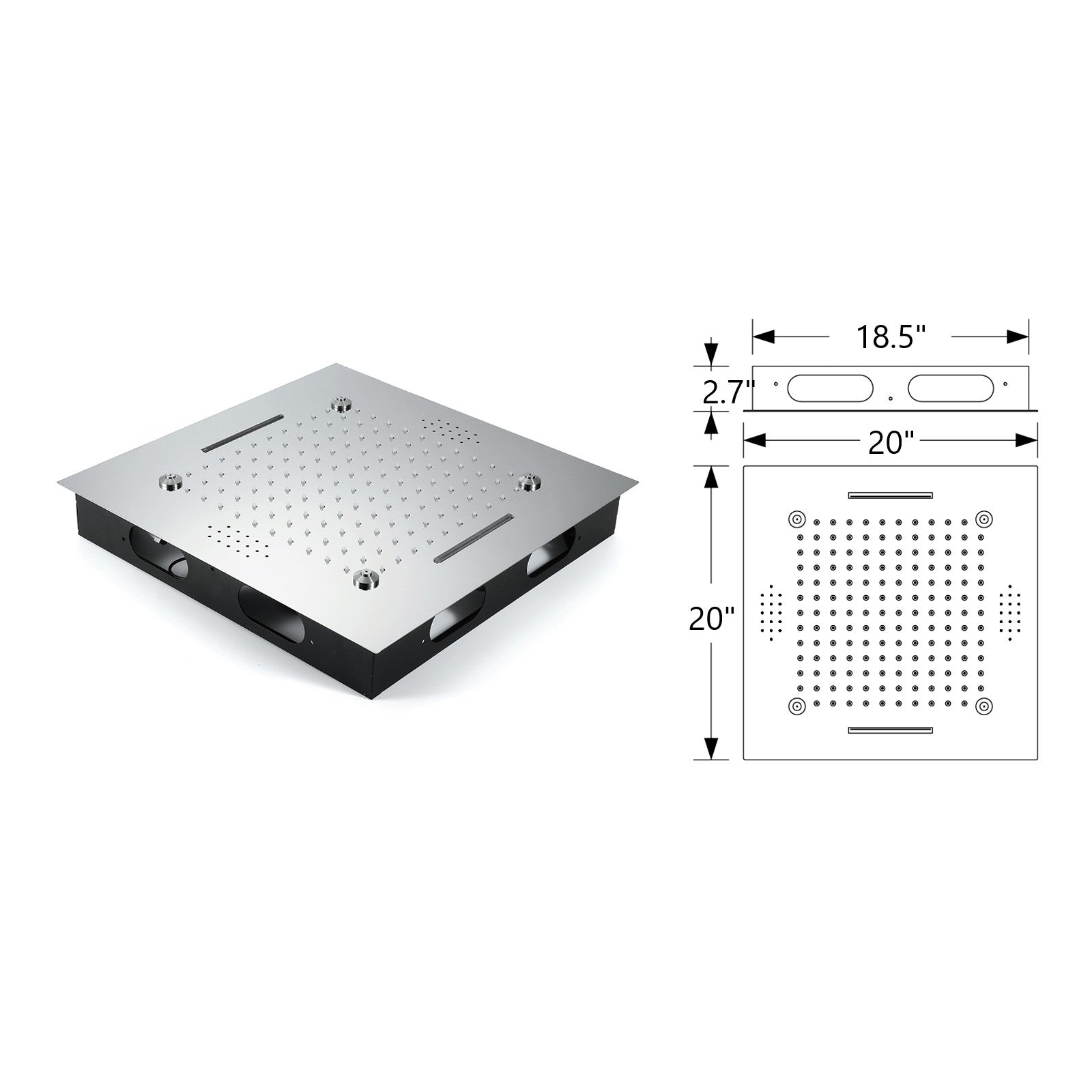 MONACO Chrome 20x20 Complete Luxury LED Music Shower Set with Rainfall, Waterfall, Mist Spray and 6 Body Jets