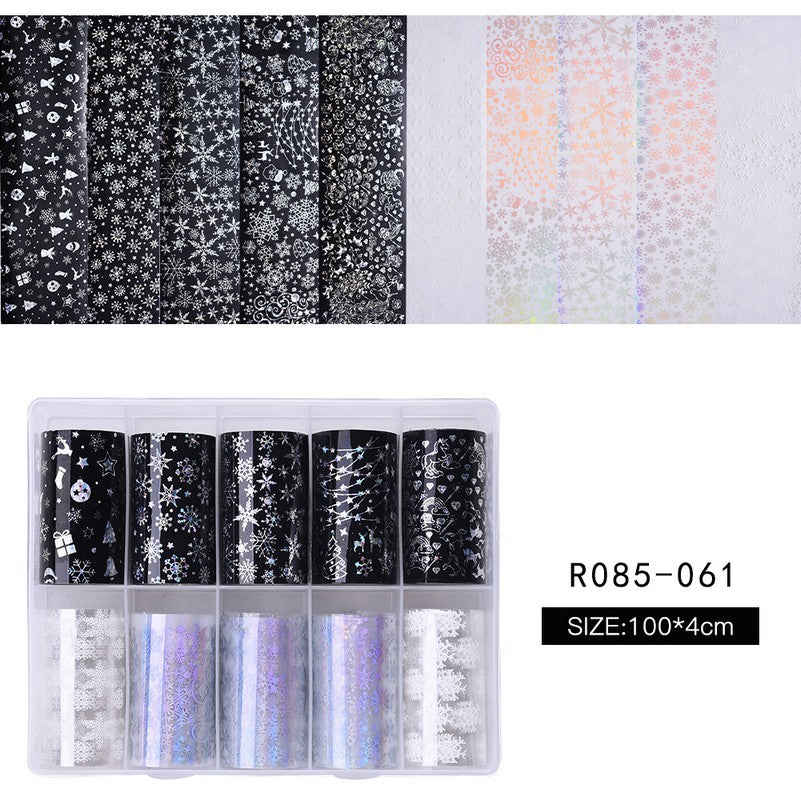 Shiny Laser Nail Art Transfer Stickers Decals - Christmas Themed DIY Nail Tips Decoration (10 Rolls/Box)