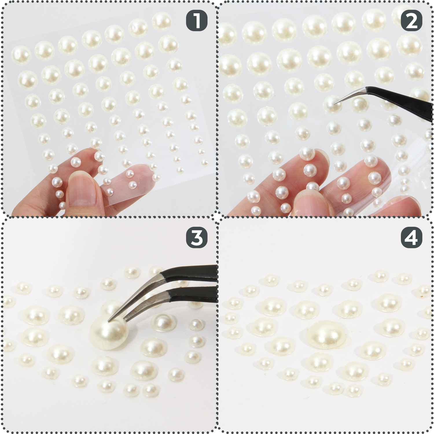 1050 PCS Pearl Stickers Self Adhesive - 5 Sizes for Face, Body, Nail, Hair, and Phone Decor