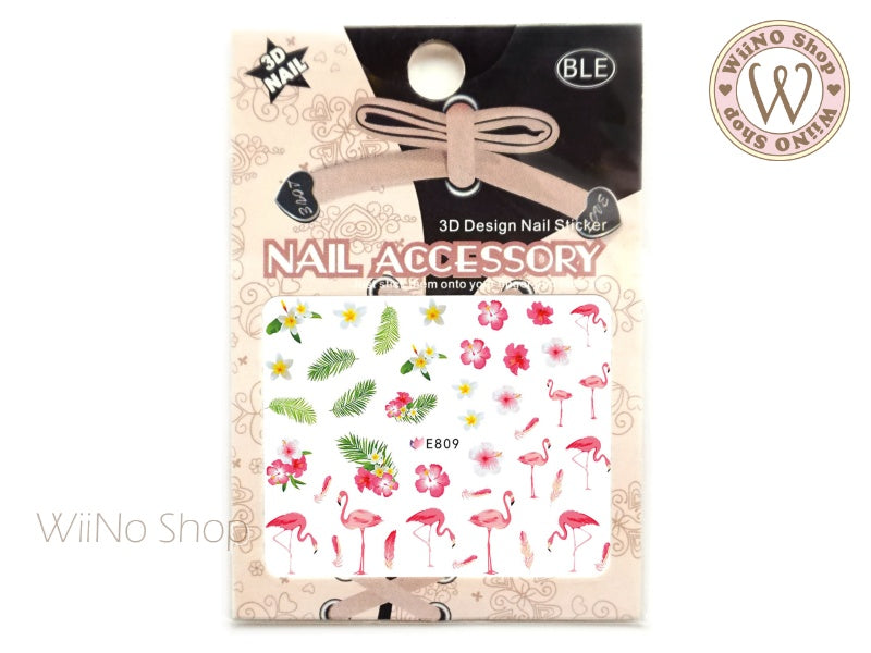 E809 Flamingo Summer Flower Adhesive Nail Art Sticker - 1 pc