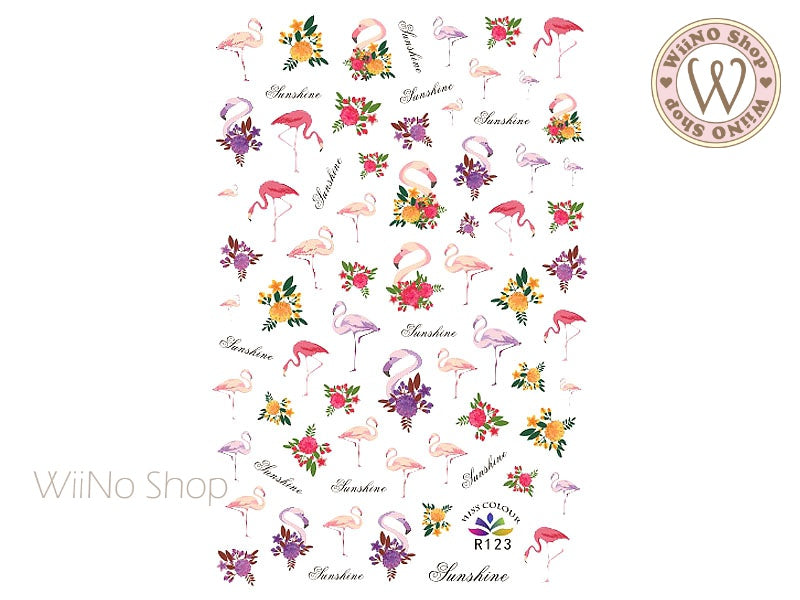 Flamingo Flowers Adhesive Nail Art Sticker - 1 pc (R123)