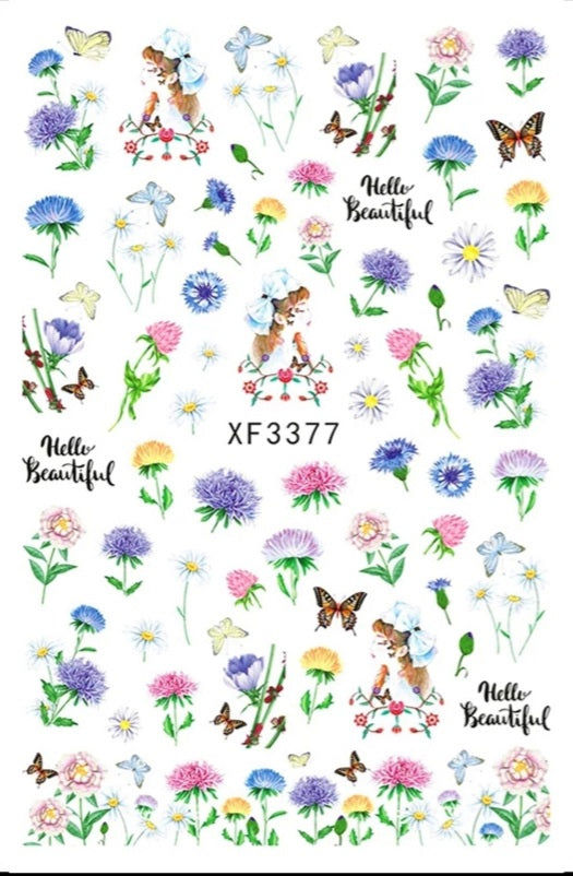 Flower Stickers XF 3371 - Nail Art Decals for Gel and Acrylic Nails