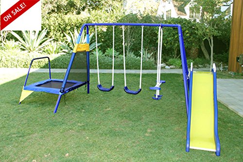 Skroutz Metal Swing Set with Slide and Trampoline for Kids Outdoor Play