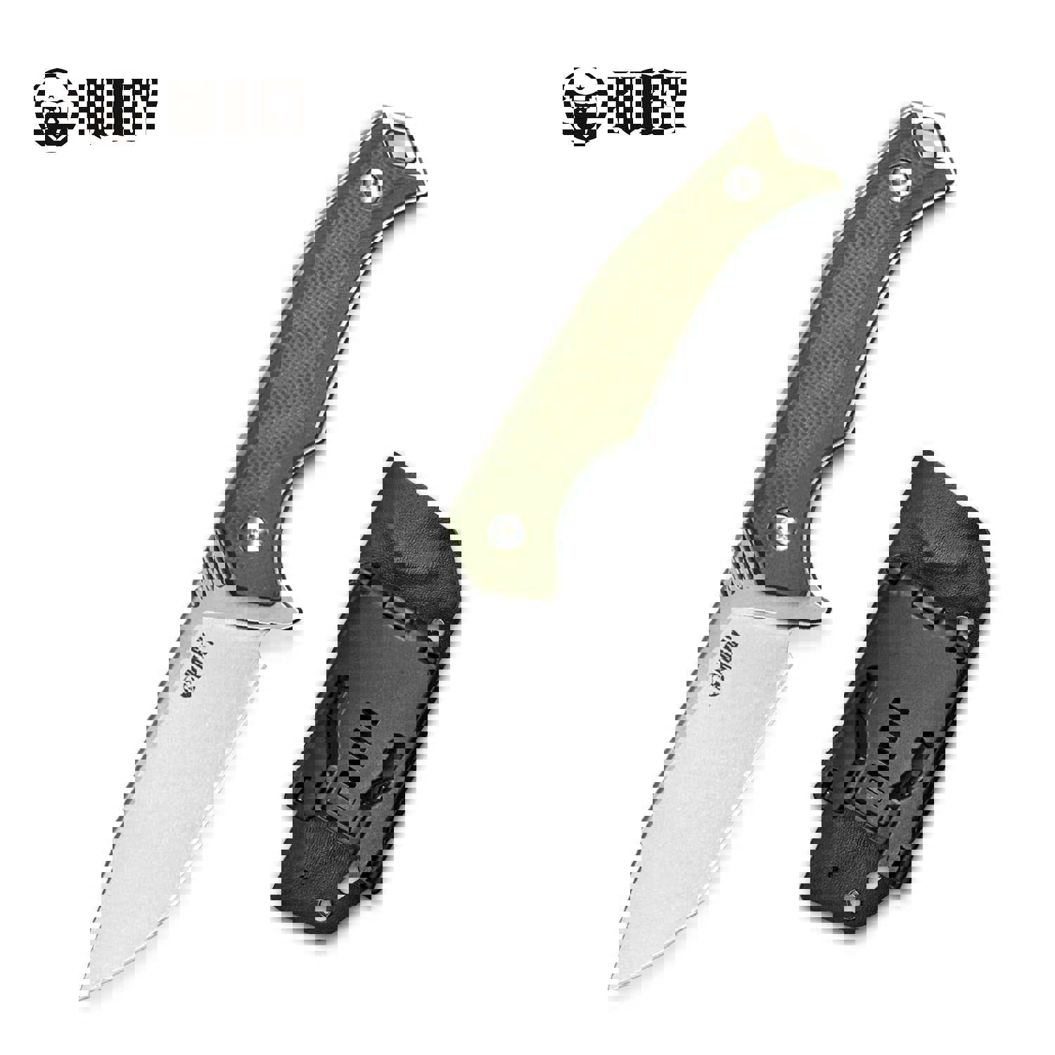 Swordfish Outdoor Gear Fixed Blade Knife with Green G10 Handle - 4.7" Stonewashed D2 Blade