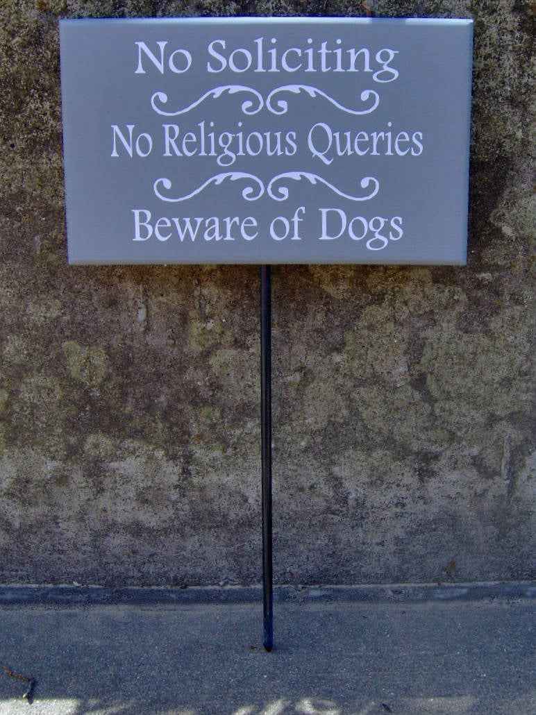 No Soliciting No Religious Queries Beware of Dog Wood Vinyl Stake Sign for Yard and Property