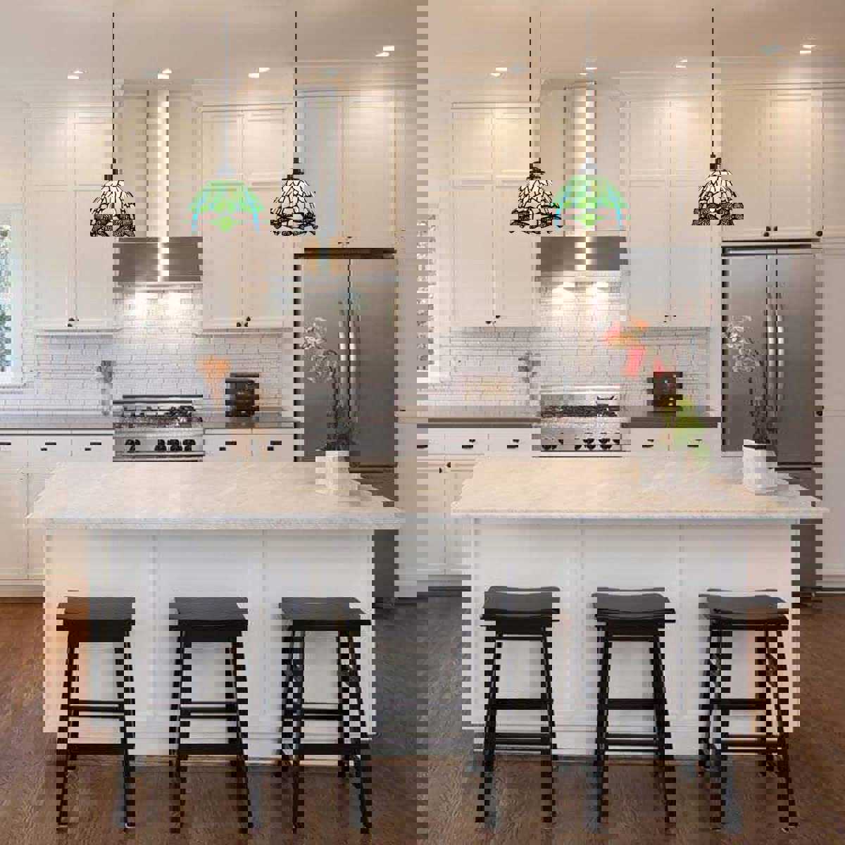 Werfactory® Tiffany Pendant Light - Green Stained Glass Dragonfly Style Shade Hanging Lamp