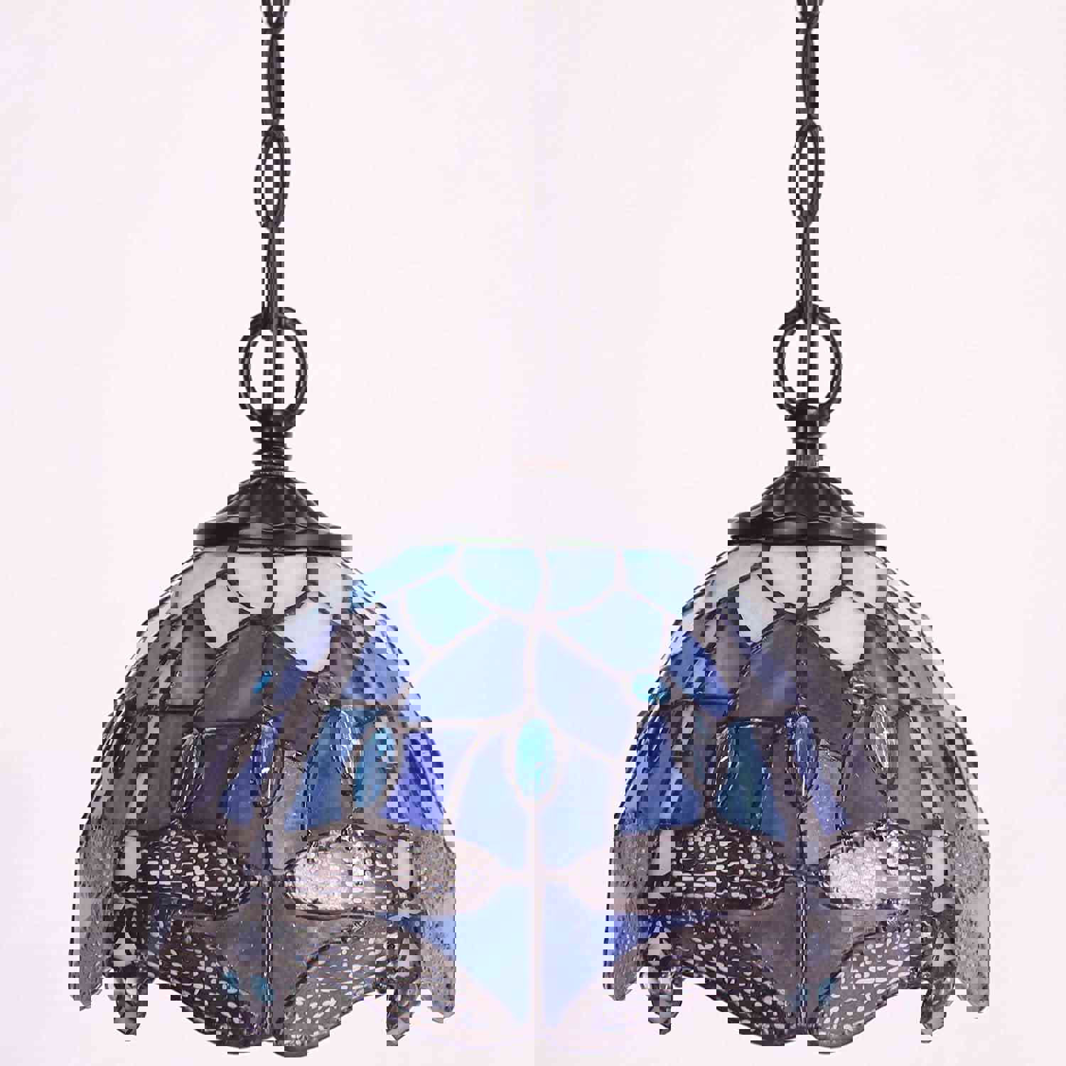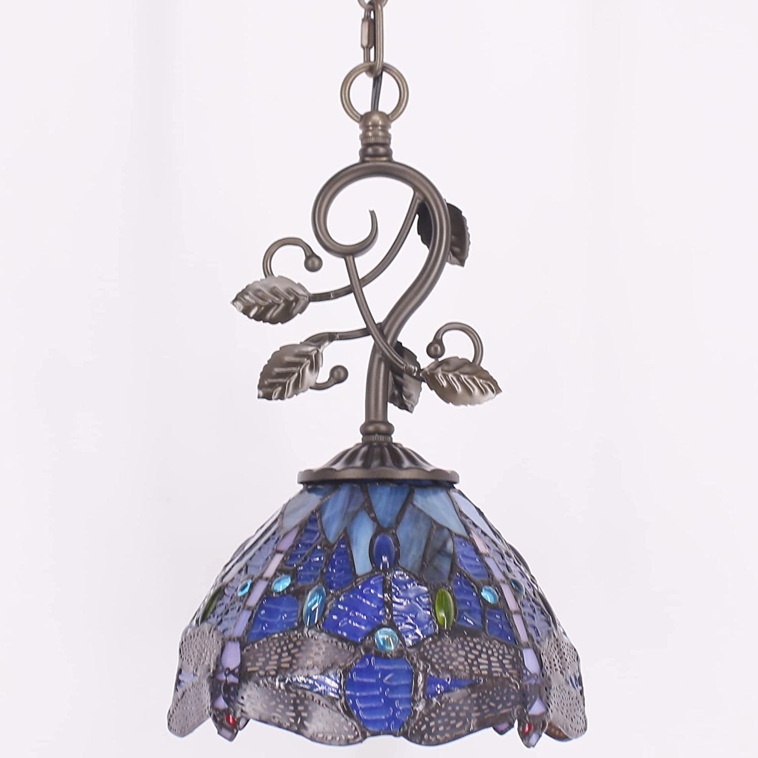 Werfactory® Tiffany Pendant Light - Navy Blue Stained Glass Dragonfly Hanging Lamp