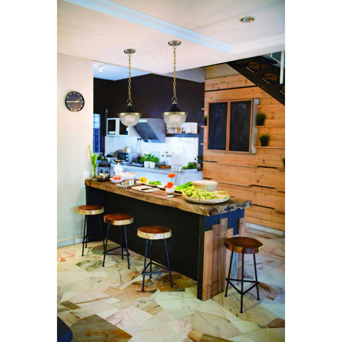FARO 1 LIGHT SMALL PENDANT - Clear Prismatic Glass with Burnished Brass and Black Accents
