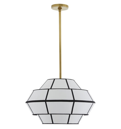 Morten Pendant - Three-Tier White Linen Pendant Light with Black Graphic