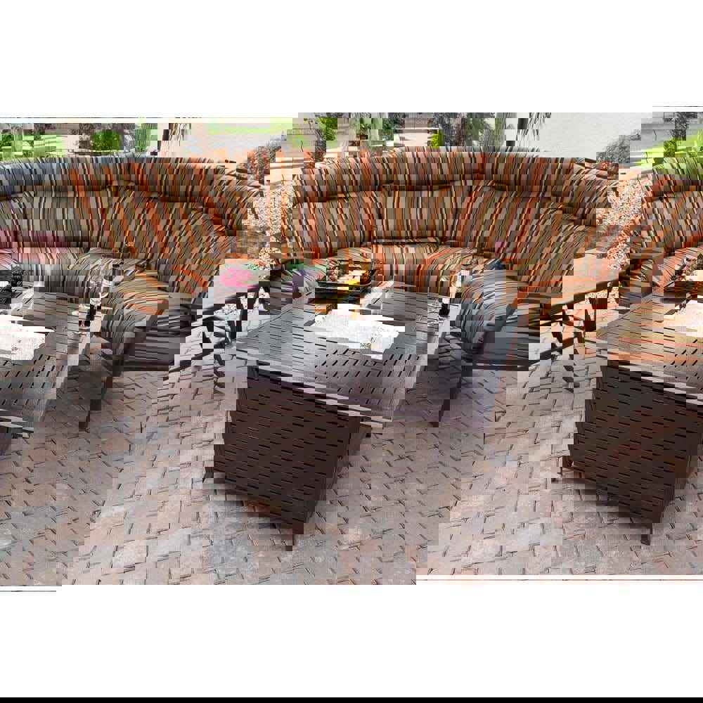 Outdoor Propane Fire Pit with Side Table Tank Holder in Brown PE Rattan