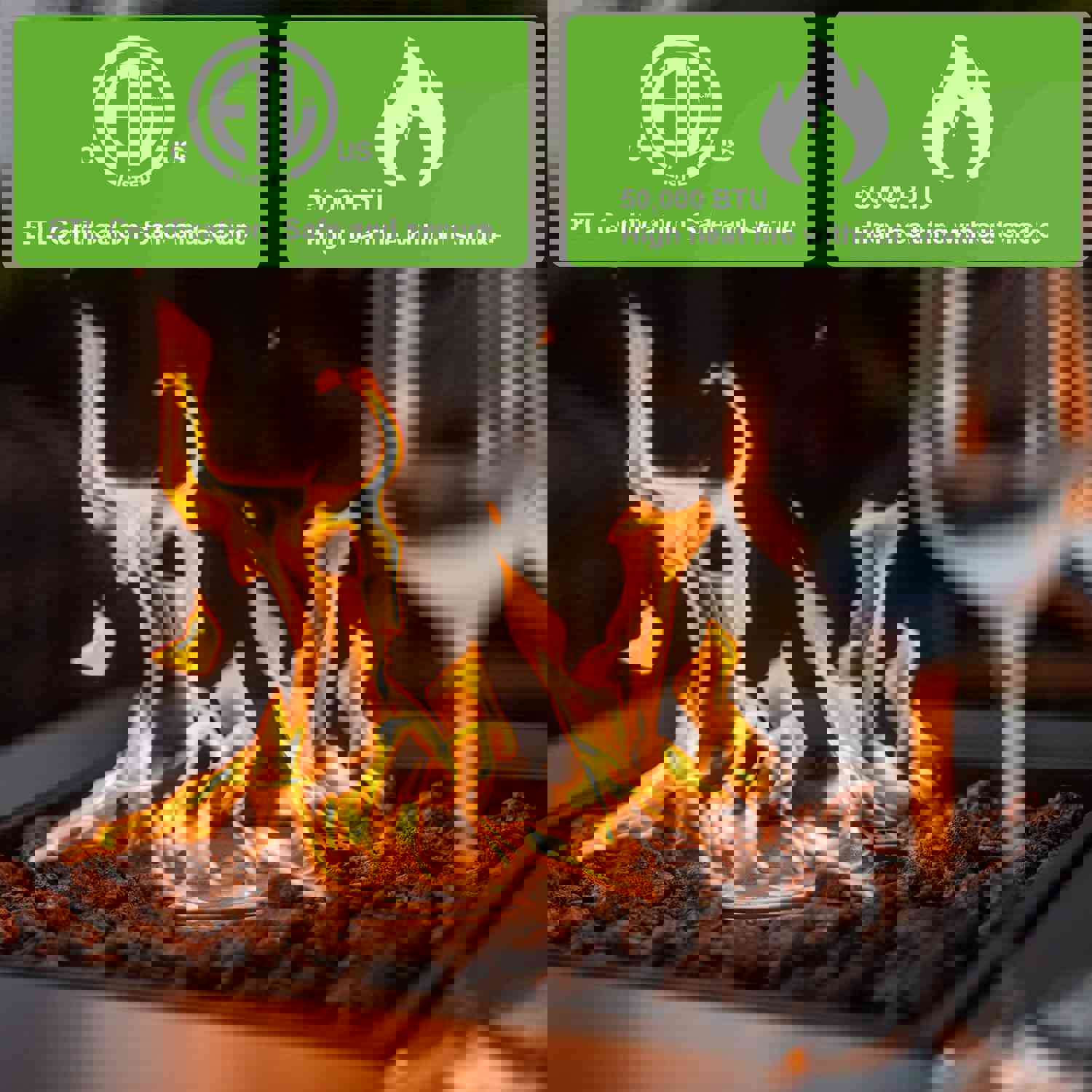 28 Outdoor Propane Fire Pits Table, 50000 BTU Gas Square Firepit Tables with Lid, Lava Stone, ETL Certification