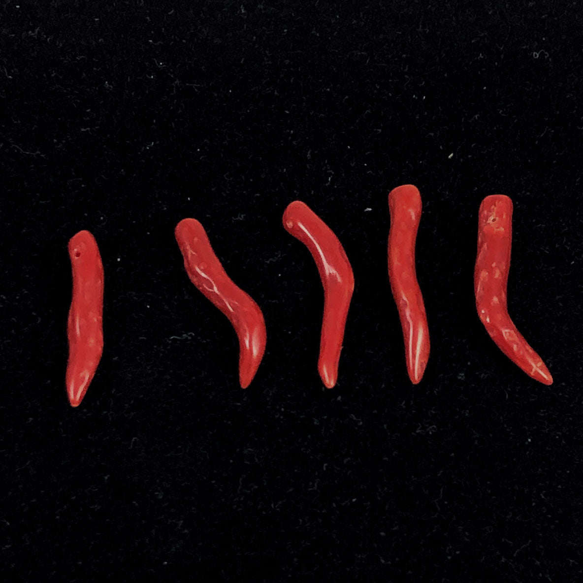 Italian Red Coral Horn Beads All Natural Cornicello (2 Pendants)
