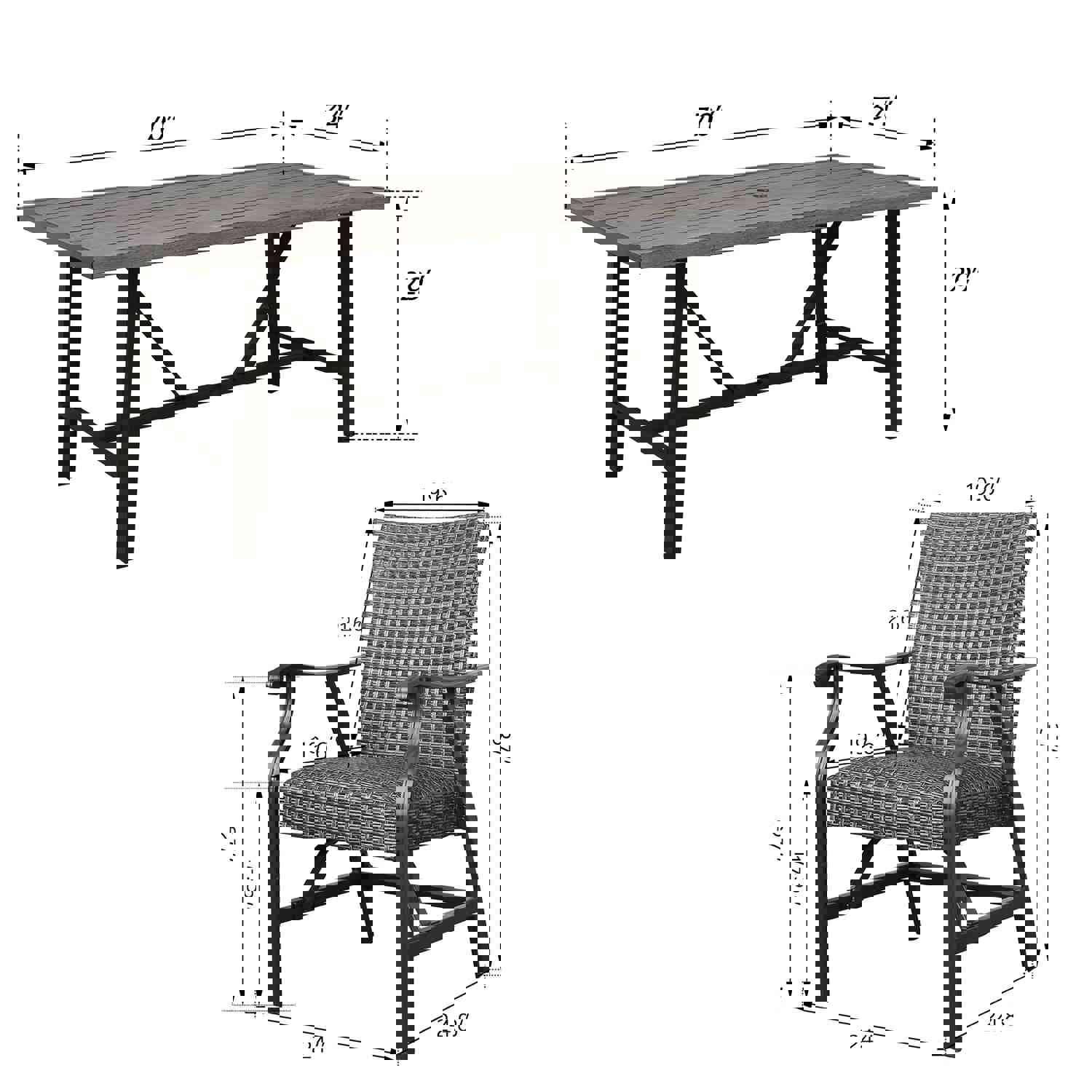 6-Person Outdoor Metal Dining Set with Aluminum Table and Wicker Rocking Chairs