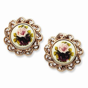 Rose-tone Floral Decal Non-Pierced Round Earrings