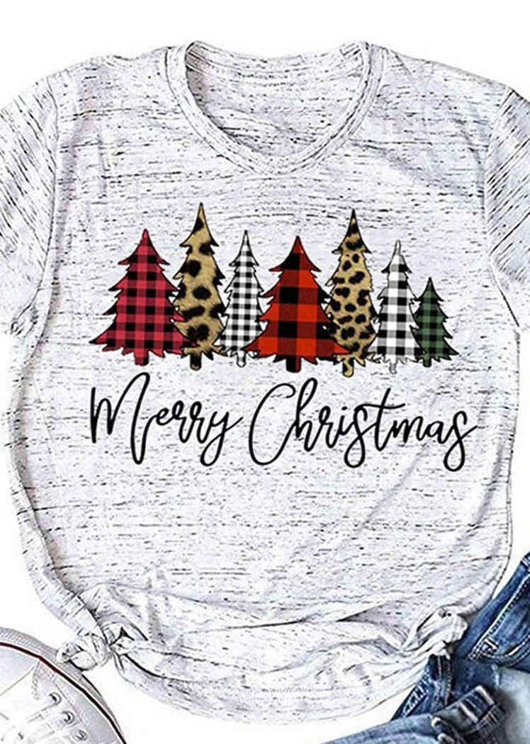 Fashion Christmas Tree Printing Short Sleeve Round Neck T-Shirt for Women