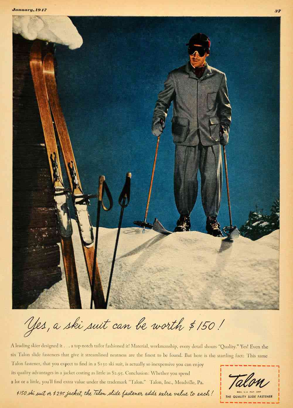 1947 Original Talon Ski Suit Jacket Vintage Winter Sport Fashion Ad
