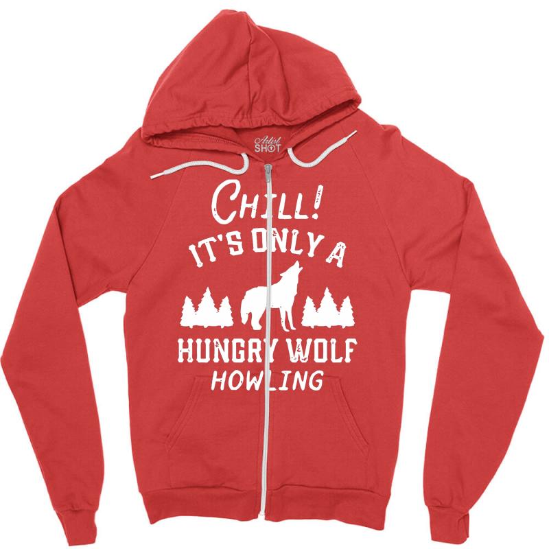 chill hungry wolf Zipper Hoodie - Unisex Soft Plush Poly-Cotton Blend
