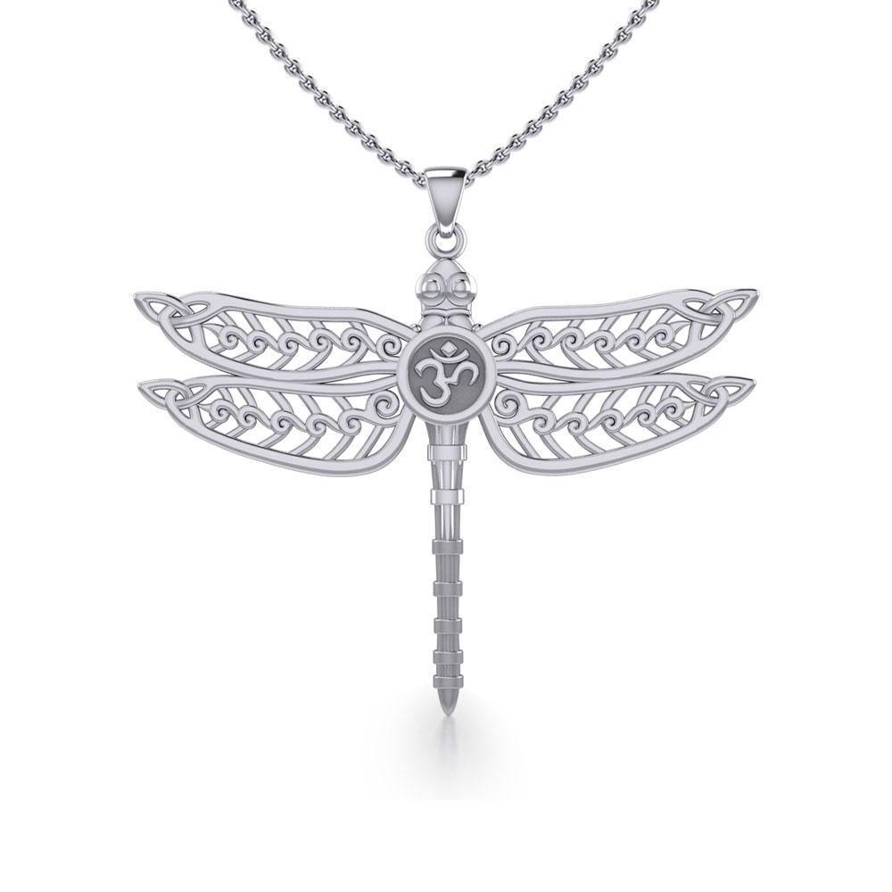 Celtic Dragonfly with Om Symbol Silver Pendant TPD5384