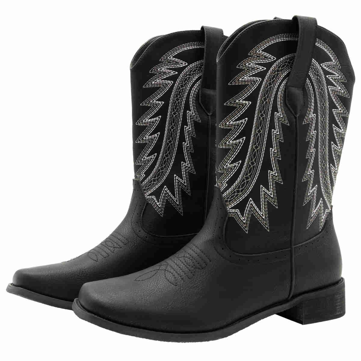 Searchers SC200917BKXL Black Cowboy Boots Unisex Square Toe Embroidered Western Boot