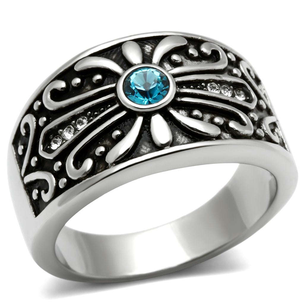 High Polished Stainless Steel Ring with Top Grade Crystal in Capri Blue for Women - Style TK377