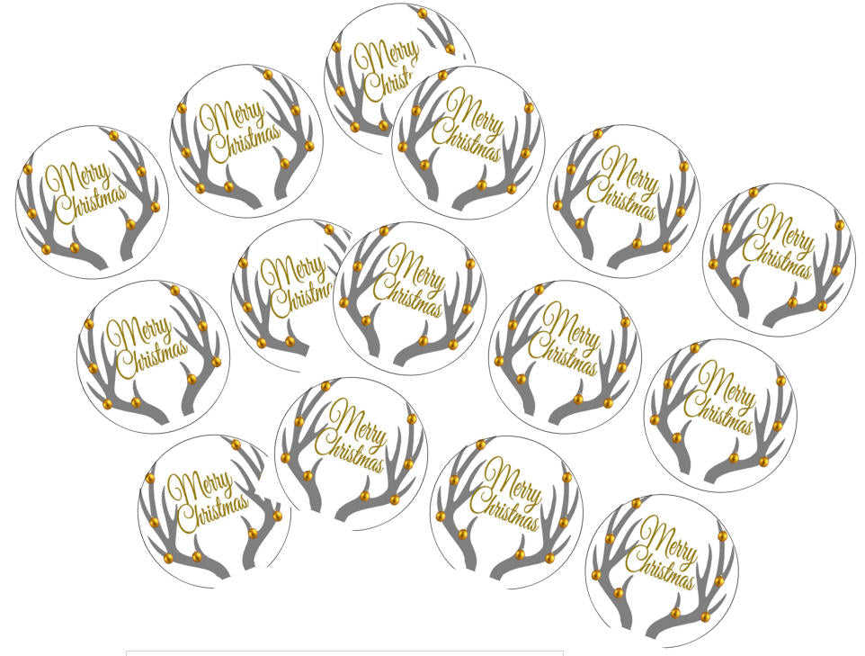90 Merry Christmas Deer Antlers Gold 1.5inch Round Party Favor Stickers - Envelope Seals- Favor Decorations