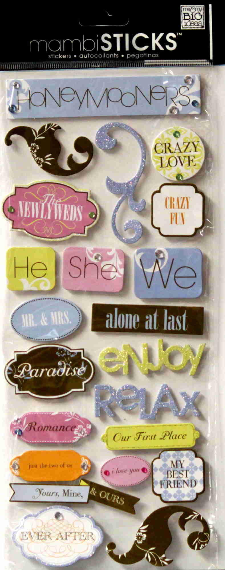 Me & My Big Ideas Mambi Sticks Chipboard Honeymooners Stickers Embellishments