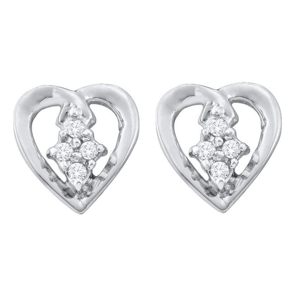 10K White Gold Round Diamond Heart Cluster Stud Earrings 1/12 Cttw